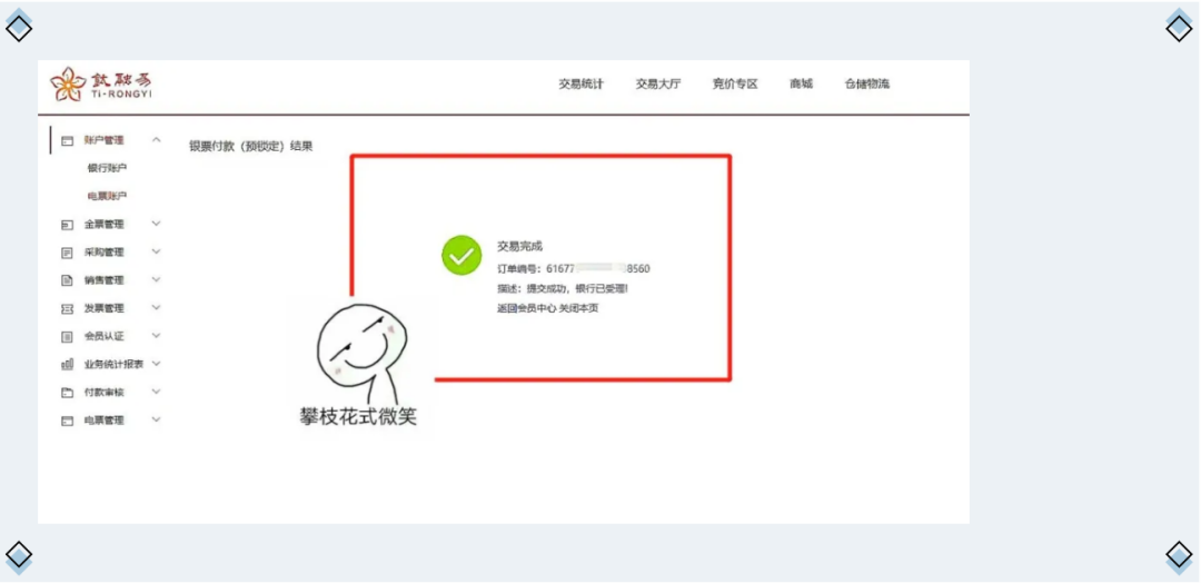 近日,随着攀枝花合聚钒钛资源公司与攀枝花钛网科技公司首笔票据支付结算的钛白粉购销交易顺利完成,“钛融易”平台正式开通上海票交所“票付通”功能,标志着“钛融易”平台成为钒钛行业首家同时具备现金和票据支付结算功能的产业互联网平台。
